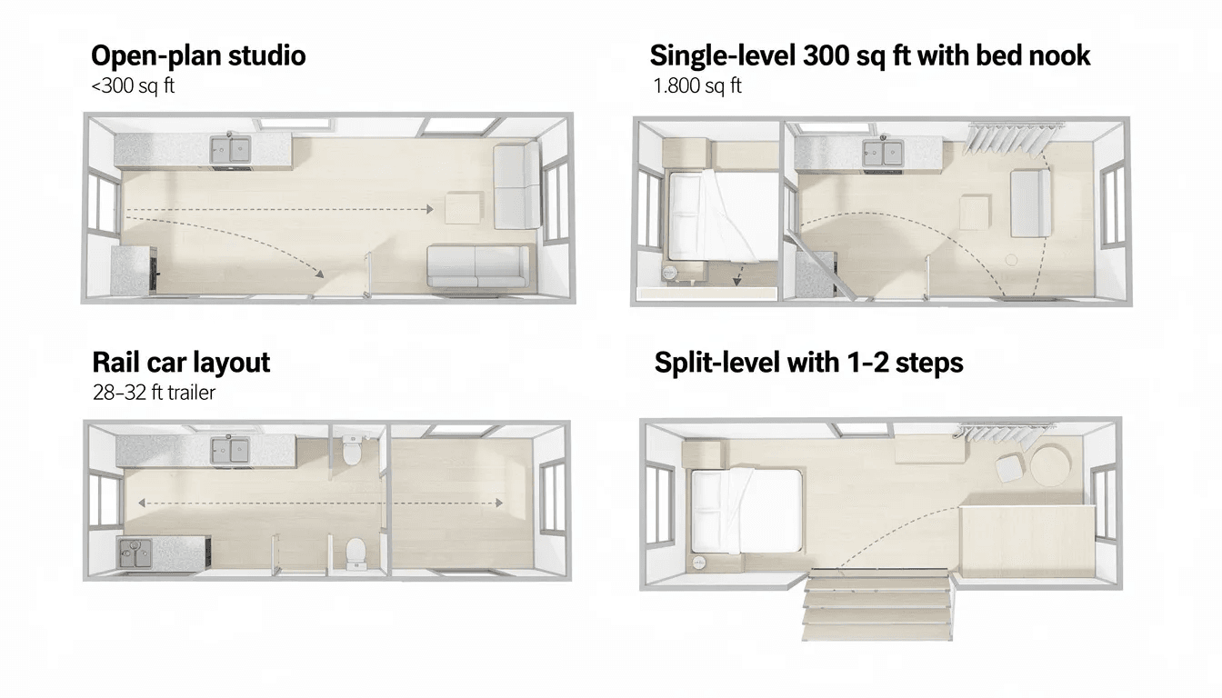 Here are the most common layout archetypes that work, similar to many proven tiny house plans that fit different lifestyles: